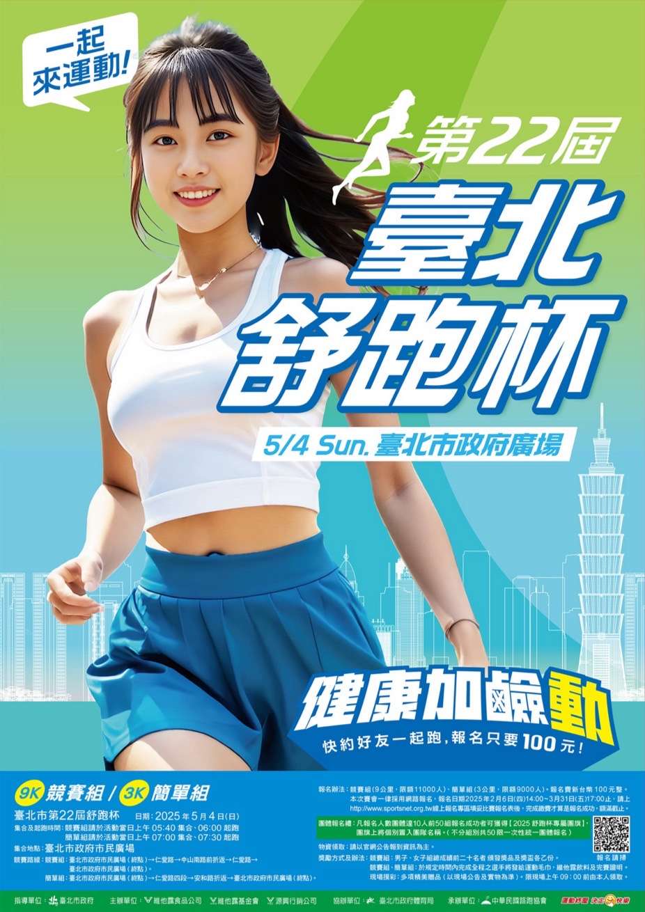 一、旨揭活動由維他露食品公司等主辦,該會承辦,並由臺北市政府指導及臺北市政府體育局協辦,訂於5月4日上午6時假臺北市政府前市民廣場起跑,沿途行經仁愛路並折返回終點市民廣場,相關訊息可至該會官方網站( https://www.sportsnet.org.tw)查 詢。