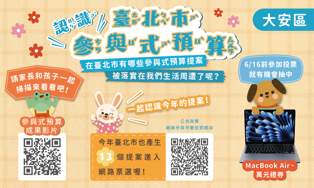 「公共政策網路參與平臺-參與式預算專區」投票網址:https://taipei.join.gov.tw/pb/index