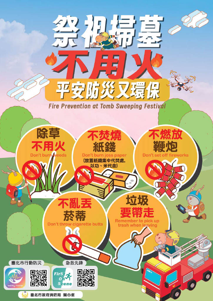 「除草不用火」、「不焚燒紙 錢」、「不燃放鞭炮」、「不亂丟菸蒂」及「垃圾要帶 走」,能有效減少林野火災之發生喔~~